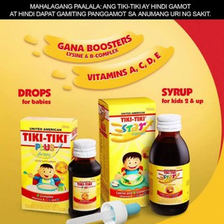 For years Filipino mothers have trusted United American Tiki-Tiki for their babies now Tiki-Tiki comes in a delicious syrup format for children 1-12 years old. Tiki-tiki is also from Unilab. Ang Tiki-Tiki Drops may Vitamin A D C and E na may Gana Booster B-Complex pa.